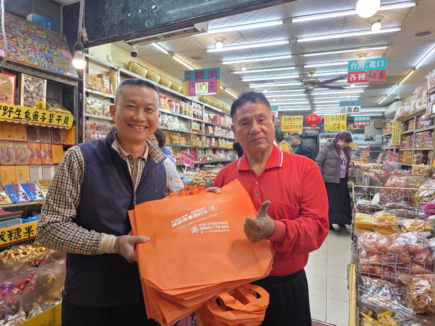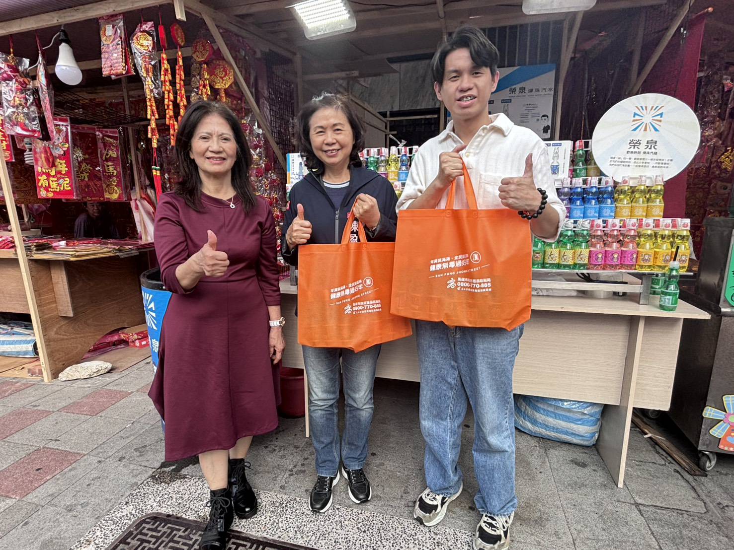 毒防局陳盈秀局長表示,春節是家人團聚、歡喜過年的好時光,也是守護健康的重要時刻。這次結合三鳳中街熱鬧的人潮,現場準備實用的反毒環保手提袋,陪伴大家採買年貨,讓年貨裝滿滿的同時,也讓健康防毒成為過好年的一部分。